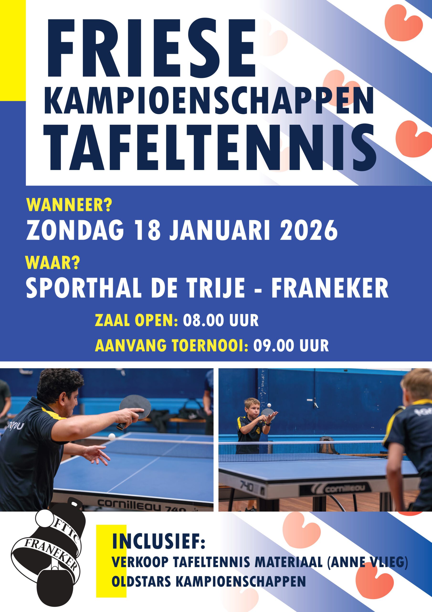 Zoek je een uitdagende sport bij een gezellige club in Friesland? Maak twee weken lang gratis kennis met tafeltennis en onze gezellige tafeltennisclub. Daarna kun je beslissen of je wel of niet lid wordt van FTTC.